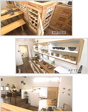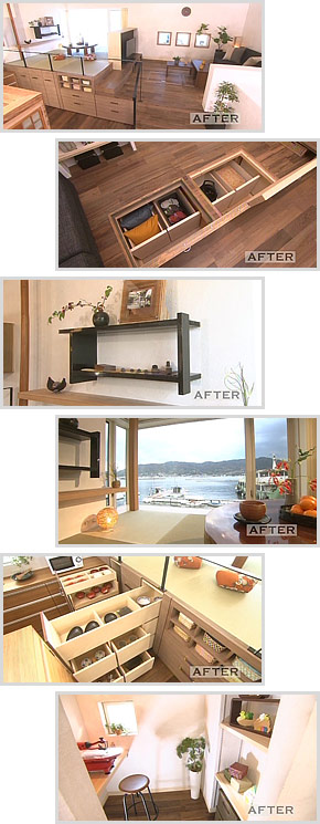 畳の間の壁に取り付けられている飾り棚は、以前2階の床の間にあったものを再利用したもの。そこにはおじいちゃんが愛用していた道具と、建具の一部を切り取った写真立てを置きました。おじいちゃんの思い出が蘇るおばあちゃんの癒しの空間です。