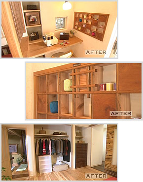 日当たりの良いおばあちゃんの寝室の片隅に設けられたのは、小窓と照明とテーブルを作りつけた作業スペース。おばあちゃんが腰を掛けながら楽に趣味の裁縫を楽しめるコーナーになっています。