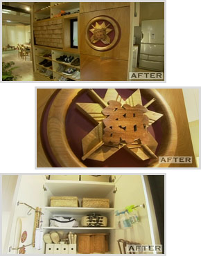 さらに、上にも壁面収納をつけ、雑貨やおばあちゃんの洋服はここにしまえるようにしました。