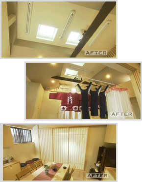 仕切りの障子を閉めれば、急な来客があった時でも慌てることなく洗濯物が隠せます。