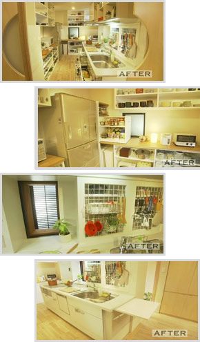 おばあちゃんは、調理道具をフックでつり下げるのが使いやすくお気に入りなので、収納扉は格子状にしました。