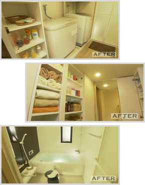 トイレと浴室の位置を入れ替えて、2台分の洗濯機置き場と脱衣場を確保。