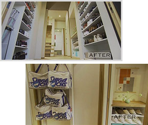 玄関扉の横の収納には、遠征前に持ち帰ってくるボールなどが仕舞えます。