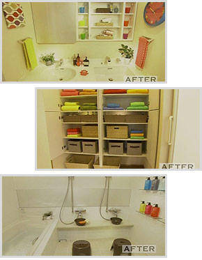 目隠しのルーバーで仕切り、その向こうにもう1つトイレを新たに設置。さらにここにも洗面台を備え、収納付きの鏡も取り付けました。 朝晩の渋滞も、これでずいぶん解消されるはずです。