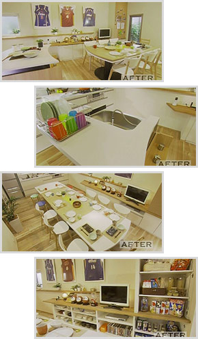帰宅した寮生たちが必ず通る動線に作られたこのキッチン、大人数の食器や調理道具が収まるよう、収納も十分に備えています。