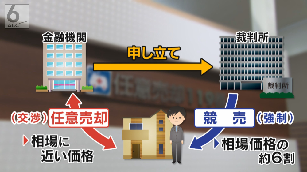 通常、住宅ローンの返済が一定期間滞ると、金融機関が申し立てをし、裁判所が「競売」を命じます。ただ、「競売」では、市場価格の6割ほどでしか、売れません。一方、「任意売却」であれば、競売にかけられる前に、所有者が自らの意思で金融機関と交渉して、相場に近い価格で、売ることができるのです。