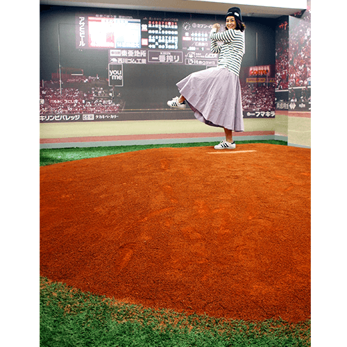 マツダスタジアムと同じ土で再現されていて、投手気分が味わえます。
