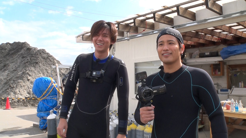 ファーストカットから、くるくる回ってテンション高めの小瀧と自前のウエットスーツ姿でほほ笑む桐山。ダイビングをするとだけ聞かされてきた2人は、「ご褒美ロケでしょ!」と胸を高鳴らせて海辺を進む。しかし渡された突撃先を見て表情が一変。オープニングを見終えたメンバーからは「最後のカット以外は楽しそうやったけどな~」(藤井)と疑問が上がるが、桐山は「ご褒美ロケやと思ったけど…」と言葉を濁す。