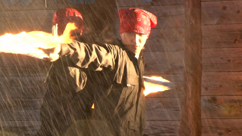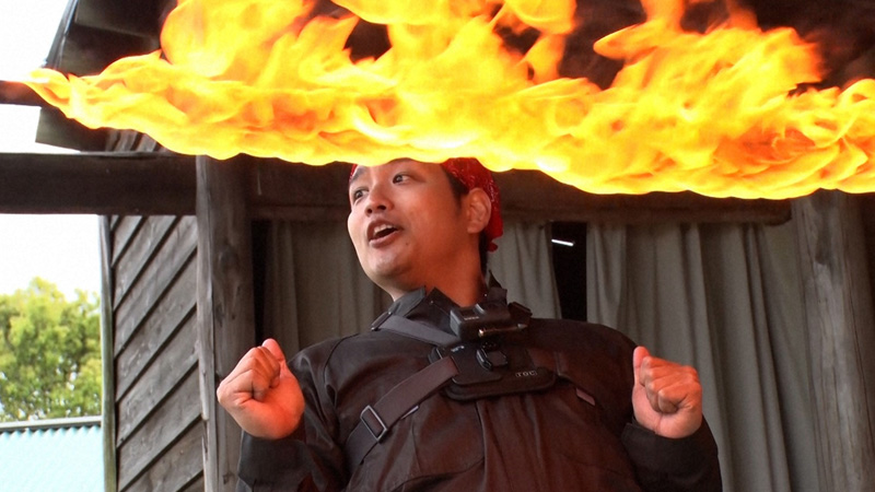 アツアツ夫婦の正体は、五輪関連のイベントの出演経験もある火を駆使したエンターテインメント集団。改めてちゃんとしたパフォーマンスのレクチャーがスタート。もちろん、危険がないように消火用の散水の準備も万端だ。炎をくぐるリンボーダンスにも挑戦。しかし、ここでなぜかリア突恒例(?)の代理戦争が勃発。スタジオのメンバーを騒然とさせる。