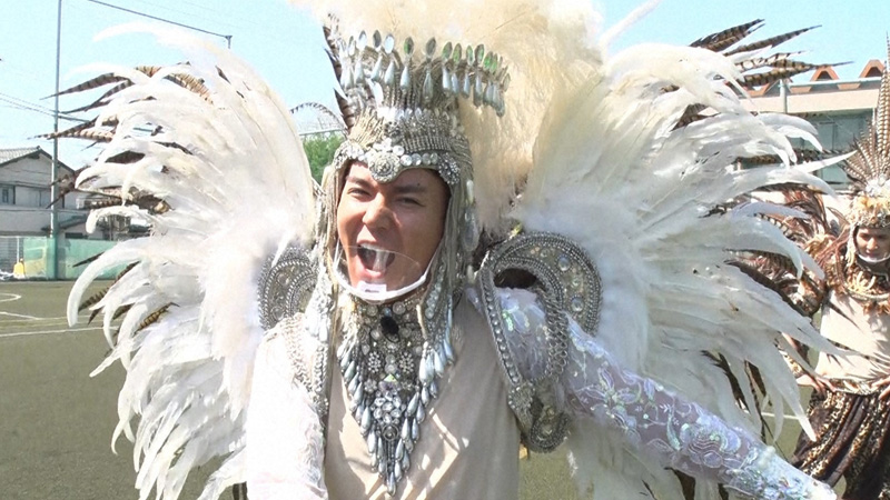 そんなヒゲマッチョの正体は、リオのカーニバルに24年連続で出場するほどの実力派サンバダンサー。その姿を見て「オレら、終盤この格好するんや…」と小瀧は危惧するが、そこはリア突。終盤どころか、サンバダンサーの衣装に即着替える羽目になる。