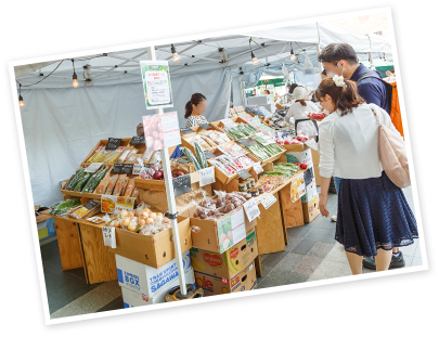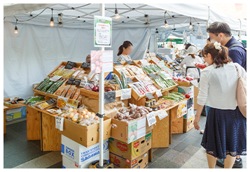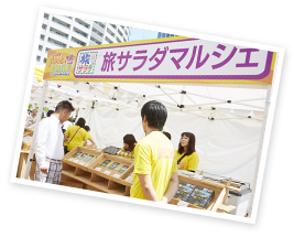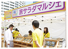 近畿地方を中心とした地産野菜をはじめ、各地の美味しい「食」が大集合。「旅サラダマルシェ」など、番組が紹介した食品や雑貨も並ぶ青空市場。合計14店舗が軒を連ねます。