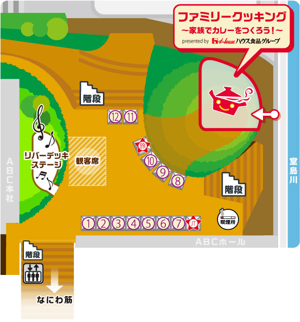 リバーデッキステージではアナウンサーや番組出演タレントによるトークショー、ミュージックライブ、プリキュアステージもあります。