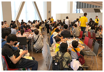 ABCの社屋に上がったスカイテラス横では、エビシー・ワークショップを実施中。