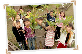 水たまりに氷が張るほど寒いある冬の朝、竹田小学校2年生のみんなは裏庭の畑に集合、育てた大根をどんどん抜いていく。大根を洗う水もとっても冷たい。さあ、続いてはお雑煮作り。みんなは大根を切ったり、人参の皮をむいてきざんだり、白みそを溶かしたりと、係に分かれて楽しそうに作業を進めていく。炊くのは校庭にあるかまどで。外は寒いがあったか~いお雑煮でみんなはとびきりの笑顔になった。