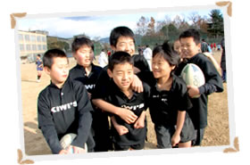 中学生のラグビーチームに混じって練習しているのは小学生のラグビーチーム、キューイズ。現在のメンバーは8人。部員が増えるまで中学生と一緒に練習しているのだ。試合形式になると中学生の迫力にはまだまだ追いつかないが、気合は充分。そんな彼らを大島コーチは「今はラグビーを楽しんで長く続けてほしい」と見守る。「タックルが強い選手」「むっちゃ最強な選手」になりたいと話すみんな。お兄ちゃん達に鍛えられながらがんばれ!