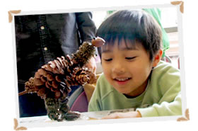 長居公園にある大阪市立自然史博物館では「大恐竜展」が開かれている。集まったこども達は恐竜が昔食べていた植物の観察や自然の素材を使って恐竜の人形作りにチャレンジ。太古の昔に存在していた恐竜はどんな植物を食べていたのだろう?人形作りに使うのは木の枝や松ぼっくり、貝殻など。思い思いに材料を組み合わせるとトリケラトプスやティラノサウルスなど見事な恐竜が出現。完成した作品を前にうれしそうなこども達だ。