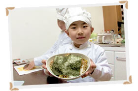 こどものための料理教室「キッズキッチンまざありいふ」の様子を紹介。集まったのは5歳~小4までのこども達4人。今日は自分で考えた丼を作る日だ。お母さん達の姿がないのは指導する浅井さんの「こども達の自主的な活動を促すため」という方針。その甲斐あって、みんなは食材選び、下ごしらえ、調理を慣れた手つきでテキパキと作業をこなしていく。出来上がった丼はどれも力作、とってもおいしそうだ。では、いただきます!