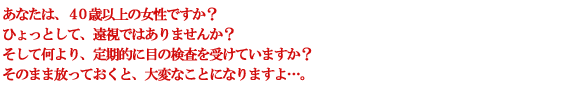 (2)だからこそ、特に症状がなくても、40歳を過ぎたら、年に一度は眼科専門医で検査を