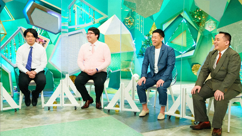 ミルクボーイとマヂカルラブリーの新旧「M-1」王者が集った回では、趣味の話題からミルクボーイ・内海に“偽装疑惑”が持ち上がる。「ちいかわ」という可愛いキャラクターにハマったという内海に対し、相方の駒場は「怪しいと思う」と、その理由を説明。「内海は本当に可愛いキャラ好きなのか?」という疑惑が持ち上がり、スタジオは紛糾!?さらに、内海の元カノとの関係を駒場が明かすと、「それってアリなの?」と、一同が内海に総ツッコミ!