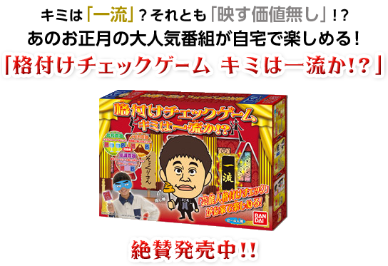 一流芸能人たちがチームを組み、味覚や音感などのジャンルごとに格付けチェックに臨み、間違える度に一流→普通→二流→三流→そっくりさん、そして最後には“映す価値なし(画面から消滅)”とランクがどんどんダウンしてゆく、お馴染みの元祖格付けバラエティーの決定版!今回も、格付けマスターを務めるのは浜田雅功、伊東四朗。豪華ゲストの中で誰が真の一流で、誰が写す価値なしなのか!? 予想のつけられない展開の中で、今回も大波乱に浜田、伊東も大熱狂!果たして一流芸能人たちは最後までテレビ画面に映っていられる事ができるのか!?
