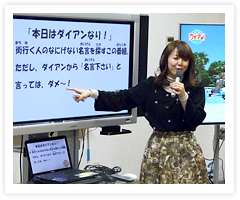 とまぁ、かなり自分でハードルを上げた後に、私がこれまでに担当したバラエティー番組や、現在担当している「本日はダイアンなり!」を見て、どんな風に喋っているか聞いてもらいました。真面目だけど明るいトーンの声だったり、アニメに出てくるような高い声だったり、のんびり口調だったり。それぞれ私の声が違うことに驚きおかしそうに笑ってくれてホッとしました。口々にモノマネをする子や、普段の自分の声とは違う声を練習してみる子もいました。お友達の変わった声が聞こえてくるとさらに笑いだす子も。せっかくなので「本日はダイアンなり!」の映像に合わせてナレーションにチャレンジしてもらいました。映像に合わせて読むことと2種類の声を使い分けることも忘れずに!映像に合っていないと「速い!速い!」とアドバイスが飛んだり、自分の声につい笑っちゃう子もいたりして、かなり和気あいあいムードとなりました。