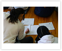 しっかりメモを取りながら授業を聴いていた児童たち。