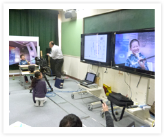 最初の授業のテーマは「ニュースが出来るまで」取材から編集、原稿、そして本番。どういう流れで作られるかをVTRで見ます。子ども達は一様に真剣な表情。教室全体を集中した空気が包みます。