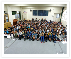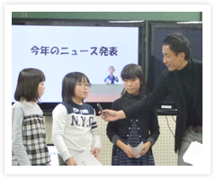次の時間は「今年のクラスのトップニュース」それぞれのクラスで工夫した中身を、代表者が発表します。自然学校の真面目な報告から、先生にヅラをかぶらせた爆笑モノまで。準備にかけた時間と真剣さが感じられる中身でした。