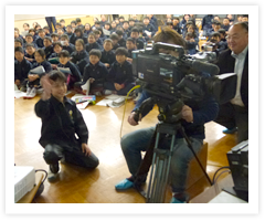 そこで、今回は「人と未来防災センター」にも研修で通っていた木戸報道課長に講師を依頼しました。文化財担当もしている木戸記者は、出前授業当日、取材(秀吉が家臣に宛てた文書の詳細)に龍野へ寄った後、高砂で出前授業を担当、即帰社して『キャスト』本番に出演、そんな報道記者の慌ただしいスケジュールを目の当たりにする授業にもなりました。