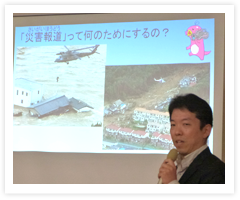 「震災時に報道機関の皆様がどのような対応をされたのか、今後防災減災に向けてどんな取り組みを考えておられるのか、視聴者にどのようなことを伝えていきたいか、等を学ばせていただければと思います。」