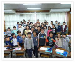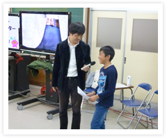 また、フロアディレクター体験も人気でした。「本番5秒前!4、3」までは声に出しますが、「2、1」は声に出さず、指を折るだけで、アナウンサーにQを出す。これが面白いようで、休憩時間にも練習する児童が多く、可愛い声が教室中に響き、とても微笑ましかったです。