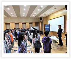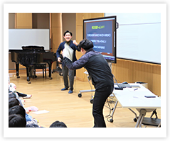 「丁寧に!大きな声で!落ち着いて!伝える!」「大切なことを強調する!」など原稿を読むときのポイントを伝授。実際のニュースOAを見てもらい、「ニュース原稿読み」に挑戦!生徒の皆さんによる「本番5秒前」の掛け声でニュース原稿読み体験がスタート!体験後にインタビュー。「緊張した」「少し噛んでしまった」など、手ごたえも得た様子。「時間内に伝えられるよう時間の配分もできていてめっちゃ上手!」と、小西陸斗アナウンサーもびっくり!参加してくれた生徒の皆さんに拍手を贈りました。