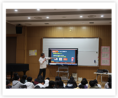 受講頂いたのは小学校5年生の生徒の皆さん。自己紹介のあと、自身が携わった仕事を紹介。さらに「社内見学」のビデオを上映し、放送業界の歴史や私たちの会社のことを知ってもらいました。また、災害時でも放送が継続できるよう日頃から備えていること、各地の放送局は、ニュースのネットワークで結ばれていることを伝えました。放送局の役割について質問すると「情報を伝える」など、答えてくれた生徒の皆さん。放送局は、総務省から免許が交付され、国民の共有の財産である“電波”を利用して放送している“免許事業”であること知ってもらい、そんな放送局の役割をギュッと凝縮した番組「おはよう朝日です」の制作のウラ側のビデオも上映、画面に映っていないところでどんな仕事があるのか学んでもらいました。匿名で誰もが発信できるSNSとは異なり、番組スタッフは何度も事実確認を行い、より早く正確な情報を皆さんに実名で届けていることも合わせて伝え、SNSの情報は鵜呑みにせず、情報を見極める力を養ってほしい!と願い、特に災害時は、SNSの情報を信じず自分で確かめ、間違った情報は拡散しないで!と訴えました。