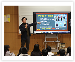 アナウンサーの仕事は、ニュースを伝えたり、テレビ番組の司会やコーナーを担当したり、スポーツ実況やラジオパーソナリティー、イベントの司会など多岐にわたるが、「世の中で起きていることをなるべく分かりやすく、正確に伝える!」ことが何よりも大事であることを知ってもらいました。そして、「色んなことを経験できる!」「頑張っている人を多くの視聴者に伝えられる!」など、大変“やりがい”のある仕事であることも伝え、「おはよう朝日土曜日です」出演の“1日”も紹介!