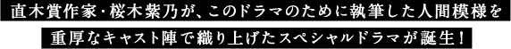 今回、朝日放送の創立65周年を記念して作られたスペシャルドラマ『氷の轍』は、直木賞作家の桜木紫乃がドラマのために原作を執筆。ドラマの放送と書籍の出版が連動したメディアミックスを展開し、注目の女流作家の最新作を映像と文字で世に送り届けていきます。