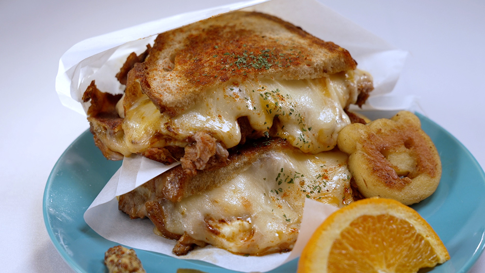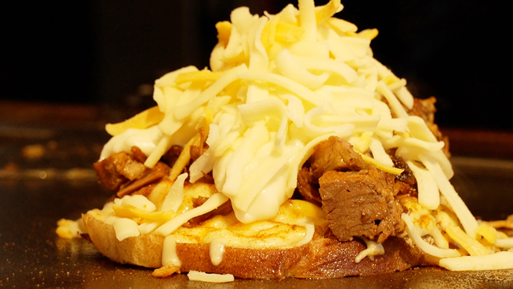 元々お好み焼き屋さんだったお店を改装してオープンしたのが4年前。豪快に調理するライブ感たっぷりのスタイルが話題となり、たちまち人気店となりました。グリルド・サンドウィッチ専門店の先駆けといわれています。一番人気は「ニックダディ」。たっぷりバターをひいた鉄板で、スライスした特製カンパーニュを焼き上げ、8時間の低温調理でとろける食感のお肉を刻み、たっぷりチーズとホワイトソースをかけてサンドし、仕上げは蒸し焼きに。他のメニューにも、とにかくチーズが盛りだくさん。美味しく伸びるチーズに、思わず笑顔がこぼれます。