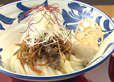 「うどん工房 悠々」は、中山さんが父親から受け継いだうどん屋で、現在はうどん作りから経営まで、すべて中山さんがやりくりしている。お昼時にはサラリーマンでいっぱいになるが、ランチタイムを過ぎると圧倒的に女性客が多くなる。というのも、お客さんの8割は中山さんのうどんに魅せられた女性なのだ。もっと多くの女性にうどんの魅力を知ってもらい、女性のうどん職人が増えるきっかけになりたいという中山さん。彼女が作るうどんメニューは女性を意識したものが多く、看板メニューの「肉きんぴらぶっかけ」や「たっぷりサラダの野菜かきあげぶっかけ」など、美味しく、かつ栄養に配慮したものが並ぶ。