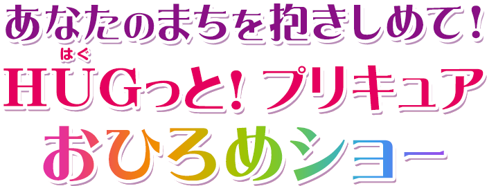 「HUGっと!プリキュア」の3人とオープニングテーマを歌う宮本佳那子さんもみんなの応援にやって来る! プリキュアと一緒に番組のテーマソングを歌って踊ろう! プリキュアの紙帽子をプレゼントするよ。 ※プレゼントは小学生以下対象、なくなり次第終了です。