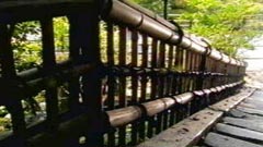 金閣の北側には義満が金閣とともに趣向を凝らした天鏡閣あった。この天鏡閣2階と金閣2階を結ぶ橋が架けられていた珍しい写真が残っている。 |