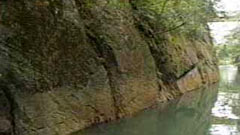 この浦見川開削の難工事に当たっていた郡奉行・行方久兵衛が、大岩盤に突き当り進退きわまった時、宇波西神社に毎夜、参籠して祈願した。その時「少し北を掘れ」との神のお告げによって、この難工事を突破することができたとの伝えがある。浦見川は長さ324m、幅8mで両側から断崖が迫り、岩壁にはサクラやフジの花が咲き乱れるころは、三方五湖の中で最高の景色となる。 |