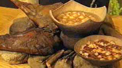 小浜港には日本海の暖流と寒流にもまれて身の引き締まった新鮮な魚介類が毎日水揚げされている。初冬にはカニ漁が解禁になり、越前ガニが市場に並ぶ。これらの新鮮な魚介類は、京阪神にも出荷されるが、地元でひとつ手を加えた加工品もおいしい。その代表が天日干しのカレイだろう。また小鯛のささ漬けも若狭ならではの特産品である。 |