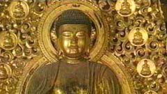 金堂に安置されている本尊・阿弥陀如来像(国宝)は、仁和寺創建当時のものと推定され、童顔の顔立ちや丸みをおびた造りは平安時代前期の特徴をよく現している。 |