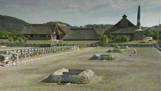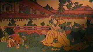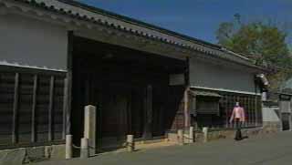 家老・大石内蔵助邸の門前に駆けつけた早水、萱野の両名は、門の扉をたたいて急を知らせた。この大石邸はその後、火災で焼失したが、この長屋門は焼け残り早水、萱野がこぶしでたたいた門も当時のまま残っている。長屋門内には刃傷事件を知らせた手紙を読む大石内蔵助、それを見守る大石の長男・主税、早水、萱野の姿が人形で再現されている。 |