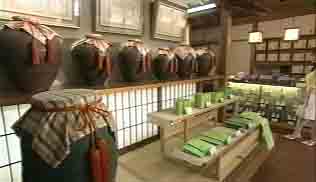 江戸時代には宇治茶は徳川将軍や各地の大名たちにも献上された。中でも徳川将軍に献上するお茶の行列は「お茶壺道中」として有名で、大名行列も道を譲ったほど格式の高いものだった。「ズイズイズッコロバシゴマミソズイ 茶壺に追われてトッピンシャン…」の童謡は、お茶壺道中にあわてふためく様子を歌ったものである。 |