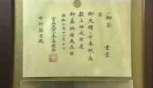 中村藤吉本店の創業以来の家訓は「子々孫々にわたり宇治の地で茶の商いに精進し、茶の薫煙を絶やさぬように」と言う「茶煙永日香」。この家訓は初代藤吉が創業まもないころ、京都・伏見に滞在していた勝海舟に会った時、海舟から贈られ、海舟が自ら筆を執って書き上げた五文字の書が伝わっている。 |