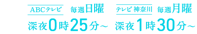 ABCテレビ 10月16日(日) 深夜0時25分/テレビ神奈川 10月17日(月) 深夜1時30分