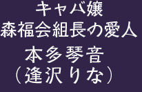 キャバクラ嬢で森福会組長の愛人。顔は幼いが、肉感的な美女。性格は天然ボケぽく流されやすいが、どこかしら、小悪魔的な魅力が漂う。