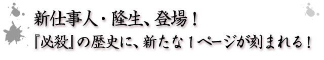 そして、2014年―――渡辺小五郎役・東山紀之をはじめ、経師屋の涼次役・松岡昌宏、花御殿のお菊役・和久井映見ら、おなじみの仕事人たちに、知念侑李演じる新仕事人・隆生が加わる。寺の住職に拾われて跡継ぎとして育てられた少年が、裏稼業の世界に足を踏み入れる理由とは?さらに、『必殺仕事人2012』で一人二役を演じた高橋英樹が、同役の仙吉として再び『必殺』に戻ってくる。果たしてこの男、敵か味方か!?