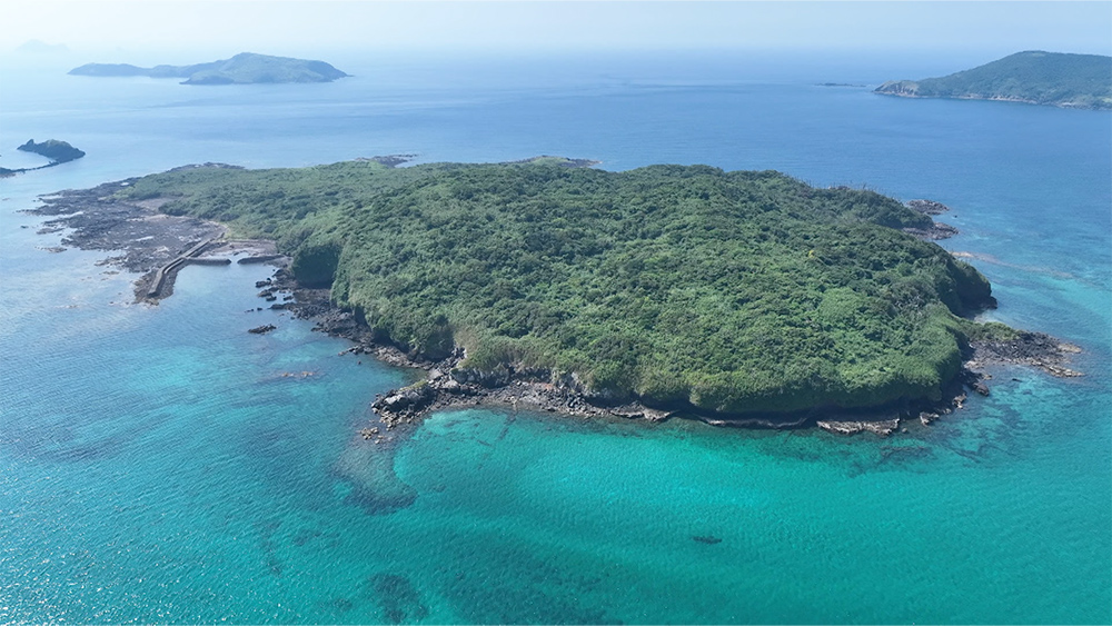 今回調査へと向かったのは、日本で島が最も多い都道府県である長崎県。中でも、五島列島の付近は島の密集エリアだ。その中から、気になる無人島らしき島を探し出し、まずは対岸にある最寄りの集落からドローンを飛ばして上空から調査を開始する。島全体に木々が生い茂っており、今は住んでいる気配が全くないものの、整備されていたであろう波止場や、船の残骸らしきものが見つかる。
