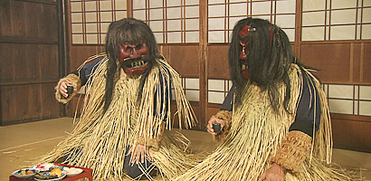 秋田の伝統文化の一つ、「なまはげ」。大晦日に集落の家々を回り、怠け者を戎める。男鹿真山伝承館では、毎日「なまはげ」の実演を行っており、激しく戸を叩きながら登場するなまはげの恐怖を体験できる。